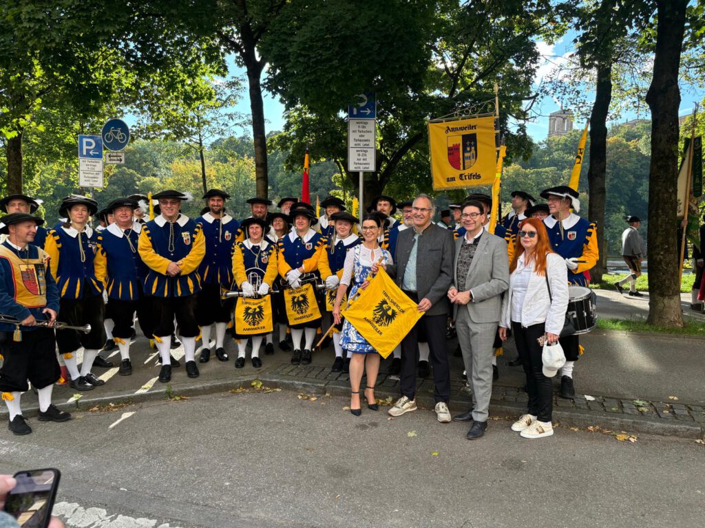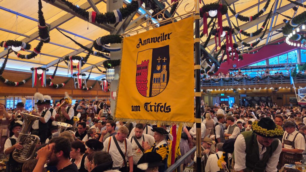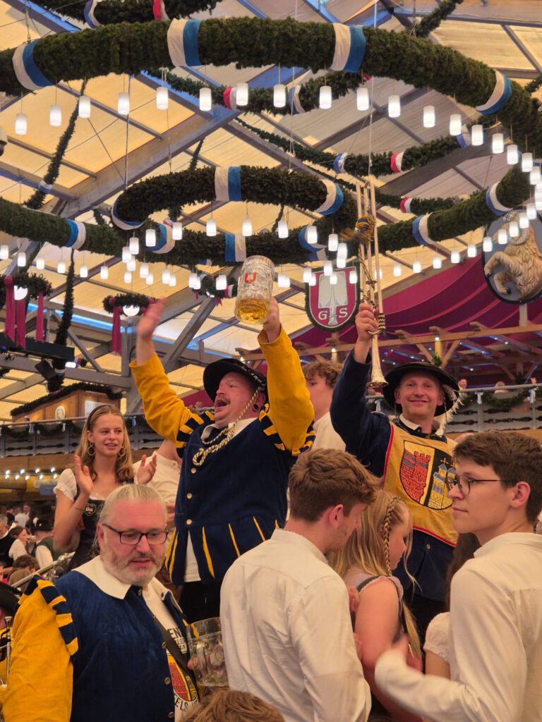 Am nächsten Tag ging es dann früh los zum Umzug. Mit anschließendem Höhepunkt: dem Einzug ins Festzelt, Fahnenschwingern auf den Tischen und einer fantastischen Stimmung!